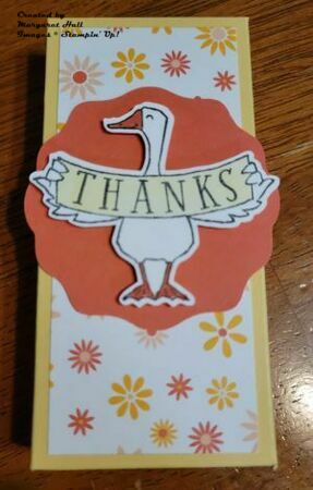 I made this fun little box as pillow gift for my Quarterly Card Class with BINGO! It contained 2 Chocolate Turtles, but some many other treats would fit inside.
